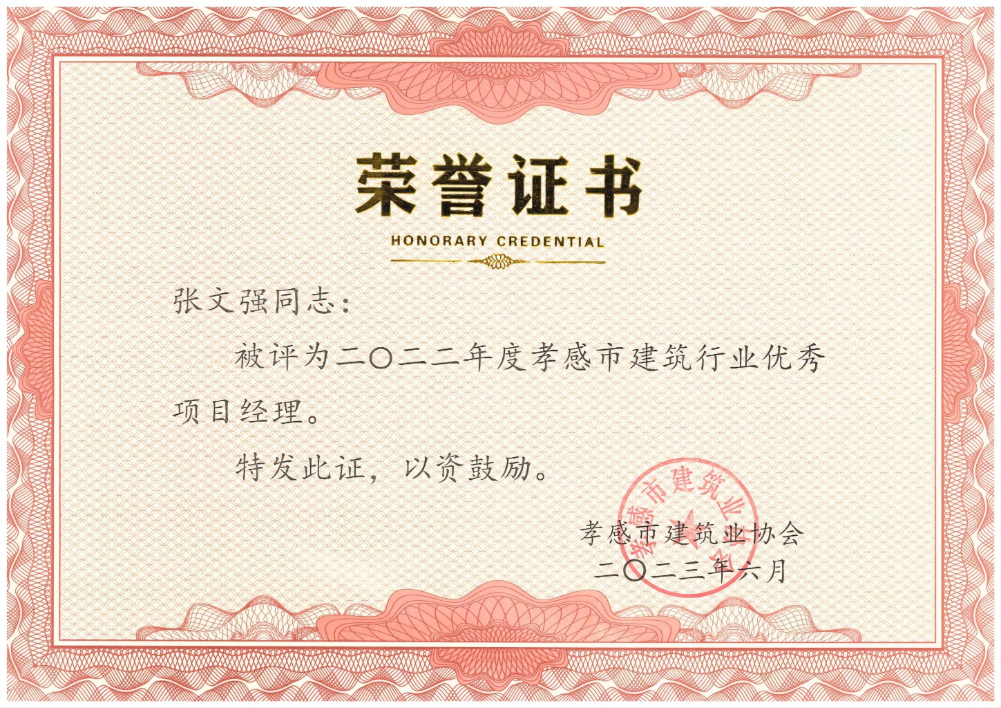 2023年度孝感市建筑行業(yè)優(yōu)秀項目經(jīng)理-秦銳...祝賀秦銳同志被評為2023年度孝感市建筑行業(yè)優(yōu)秀項目經(jīng)理...